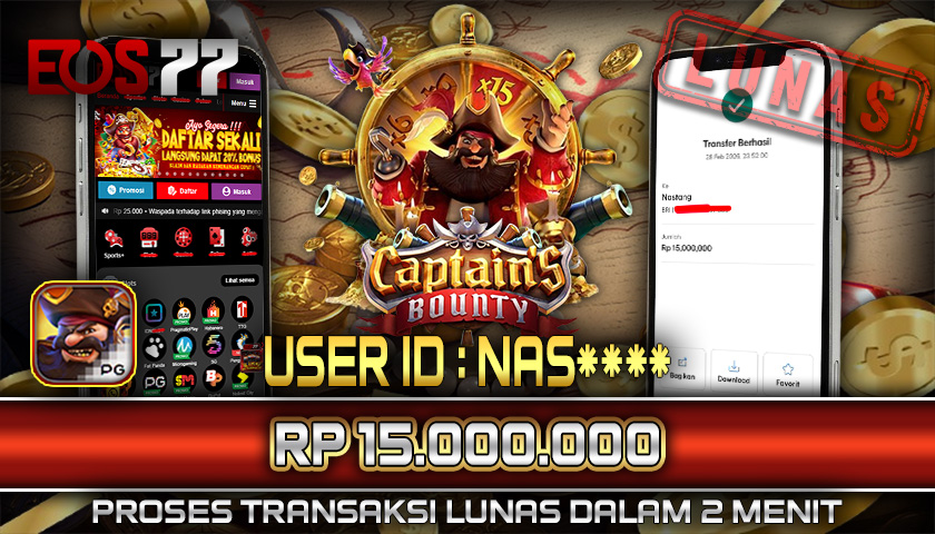 Selamat kami sampaikan kepada pemilik User ID: NAS**** yang berhasil meraih kemenangan besar melalui permainan Captain’s Bounty dengan total hadiah sebesar Rp 15.000.000. Setelah melakukan pengajuan withdraw, proses pencairan dana diproses dengan cepat dalam waktu sekitar 5–10 menit, dan pihak EOS77 langsung mengirimkan dana tersebut ke rekening yang terdaftar. Bukti transfer yang tersedia merupakan bukti resmi dan sah sesuai data transaksi dari bank tujuan.