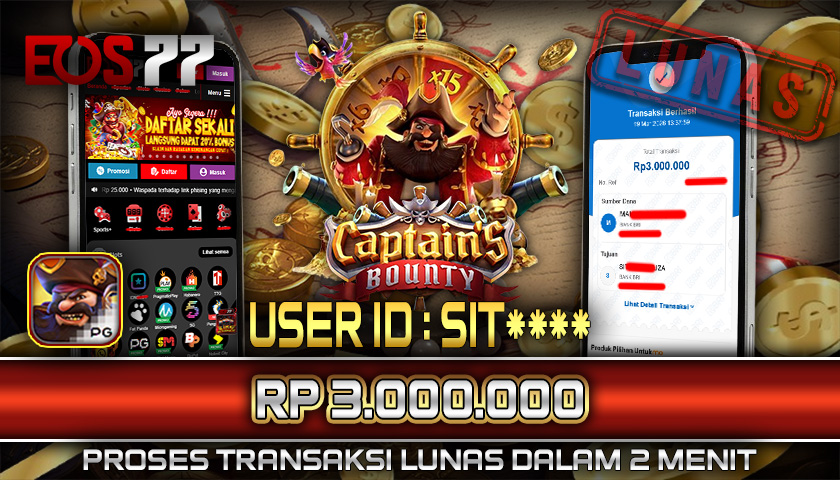 Selamat kami sampaikan kepada pemilik User ID: SIT**** yang berhasil meraih kemenangan besar melalui permainan Captain’s Bounty dengan total hadiah sebesar Rp 3.000.000. Setelah melakukan pengajuan withdraw, proses pencairan dana diproses dengan cepat dalam waktu sekitar 5–10 menit, dan pihak EOS77 langsung mengirimkan dana tersebut ke rekening yang terdaftar. Bukti transfer yang tersedia merupakan bukti resmi dan sah sesuai data transaksi dari bank tujuan.