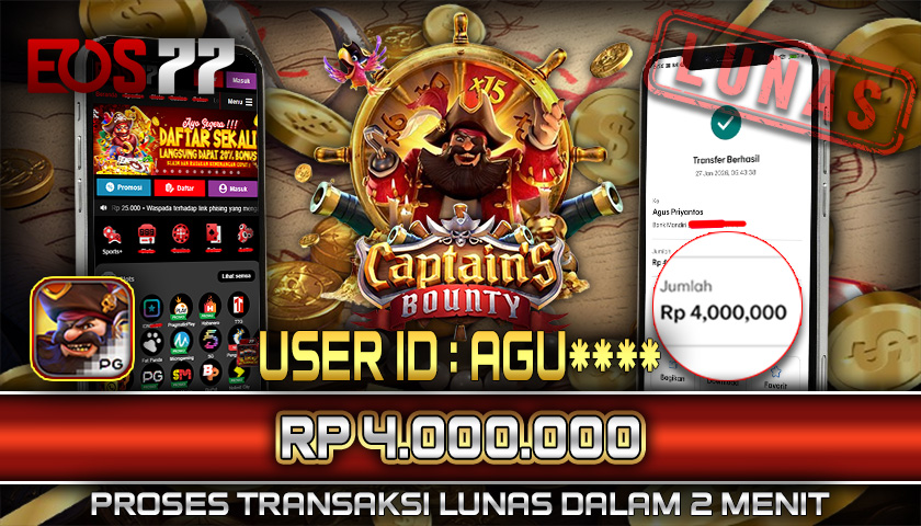 Selamat kami sampaikan kepada pemilik User ID: AGU**** yang berhasil meraih kemenangan besar melalui permainan Captain’s Bounty dengan total hadiah sebesar Rp 4.000.000. Setelah melakukan pengajuan withdraw, proses pencairan dana diproses dengan cepat dalam waktu sekitar 5–10 menit, dan pihak EOS77 langsung mengirimkan dana tersebut ke rekening yang terdaftar. Bukti transfer yang tersedia merupakan bukti resmi dan sah sesuai data transaksi dari bank tujuan.