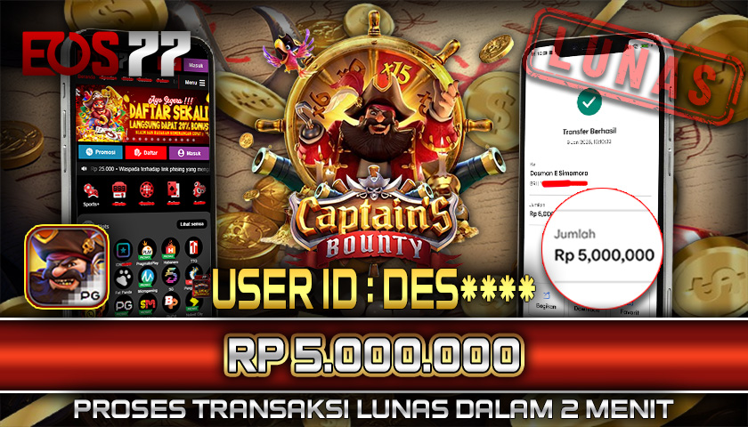 Selamat kami sampaikan kepada pemilik User ID: DES**** yang berhasil meraih kemenangan besar melalui permainan Captain’s Bounty dengan total hadiah sebesar Rp 5.000.000. Setelah melakukan pengajuan withdraw, proses pencairan dana diproses dengan cepat dalam waktu sekitar 5–10 menit, dan pihak EOS77 langsung mengirimkan dana tersebut ke rekening yang terdaftar. Bukti transfer yang tersedia merupakan bukti resmi dan sah sesuai data transaksi dari bank tujuan.