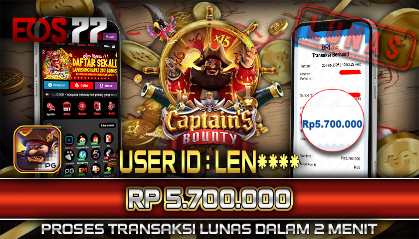 Selamat kami sampaikan kepada pemilik User ID: LEN**** yang berhasil meraih kemenangan besar melalui permainan Captain’s Bounty dengan total hadiah sebesar Rp 5.700.000. Setelah melakukan pengajuan withdraw, proses pencairan dana diproses dengan cepat dalam waktu sekitar 5–10 menit, dan pihak EOS77 langsung mengirimkan dana tersebut ke rekening yang terdaftar. Bukti transfer yang tersedia merupakan bukti resmi dan sah sesuai data transaksi dari bank tujuan.