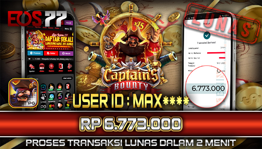 Selamat kami sampaikan kepada pemilik User ID: MAX**** yang berhasil meraih kemenangan besar melalui permainan Captain’s Bounty dengan total hadiah sebesar Rp 6.773.000. Setelah melakukan pengajuan withdraw, proses pencairan dana diproses dengan cepat dalam waktu sekitar 5–10 menit, dan pihak EOS77 langsung mengirimkan dana tersebut ke rekening yang terdaftar. Bukti transfer yang tersedia merupakan bukti resmi dan sah sesuai data transaksi dari bank tujuan.