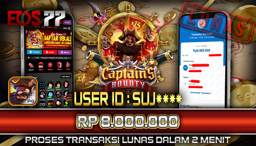 Selamat kami sampaikan kepada pemilik User ID: SUJ**** yang berhasil meraih kemenangan besar melalui permainan Captain’s Bounty dengan total hadiah sebesar Rp 8.000.000. Setelah melakukan pengajuan withdraw, proses pencairan dana diproses dengan cepat dalam waktu sekitar 5–10 menit, dan pihak EOS77 langsung mengirimkan dana tersebut ke rekening yang terdaftar. Bukti transfer yang tersedia merupakan bukti resmi dan sah sesuai data transaksi dari bank tujuan.