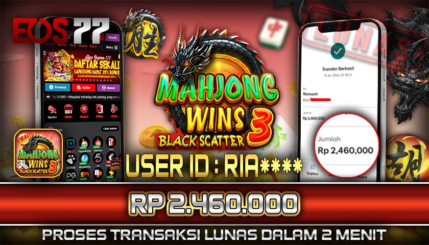 Selamat kami sampaikan kepada pemilik User ID: RIA**** yang berhasil meraih kemenangan besar melalui permainan Mahjong Wins 3 Black Scatter dengan total hadiah sebesar Rp 2.460.000. Setelah melakukan pengajuan withdraw, proses pencairan dana diproses dengan cepat dalam waktu sekitar 5–10 menit, dan pihak EOS77 langsung mengirimkan dana tersebut ke rekening yang terdaftar. Bukti transfer yang tersedia merupakan bukti resmi dan sah sesuai data transaksi dari bank tujuan.