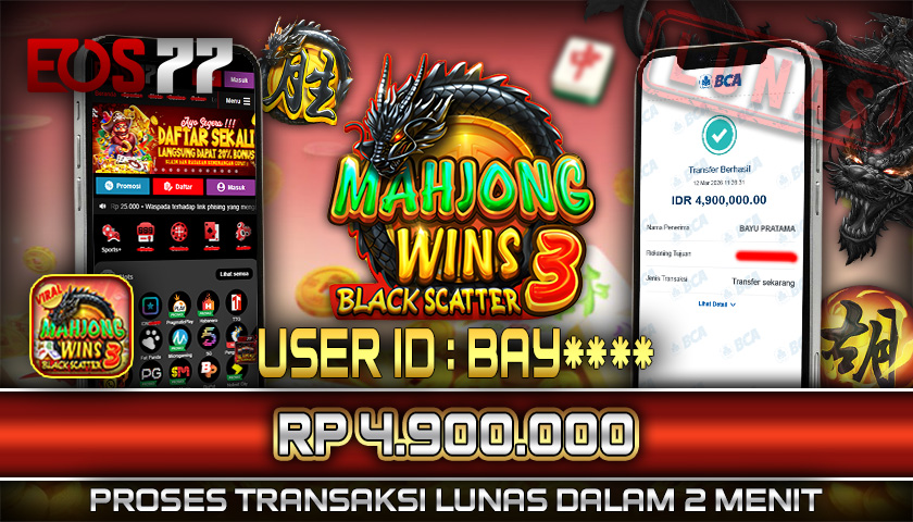 Selamat kami sampaikan kepada pemilik User ID: BAY**** yang berhasil meraih kemenangan besar melalui permainan Mahjong Wins 3 Black Scatter dengan total hadiah sebesar Rp 4.900.000. Setelah melakukan pengajuan withdraw, proses pencairan dana diproses dengan cepat dalam waktu sekitar 5–10 menit, dan pihak EOS77 langsung mengirimkan dana tersebut ke rekening yang terdaftar. Bukti transfer yang tersedia merupakan bukti resmi dan sah sesuai data transaksi dari bank tujuan.