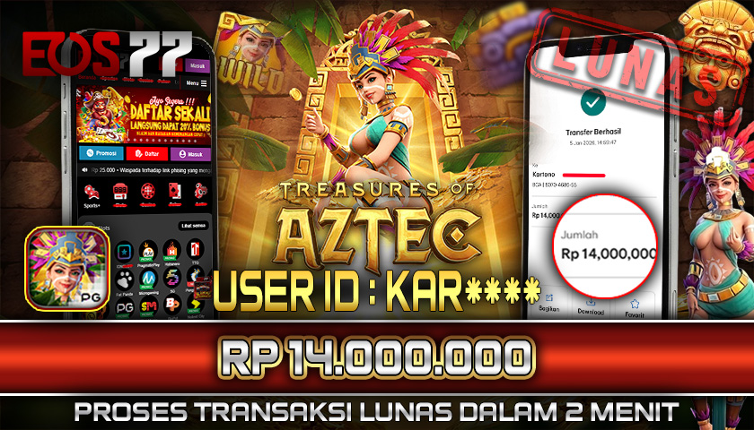 Selamat kami sampaikan kepada pemilik User ID: ZEG**** yang berhasil meraih kemenangan besar melalui permainan Treasure of Aztec dengan total hadiah sebesar Rp 14.000.000. Setelah melakukan pengajuan withdraw, proses pencairan dana diproses dengan cepat dalam waktu sekitar 5–10 menit, dan pihak EOS77 langsung mengirimkan dana tersebut ke rekening yang terdaftar. Bukti transfer yang tersedia merupakan bukti resmi dan sah sesuai data transaksi dari bank tujuan.