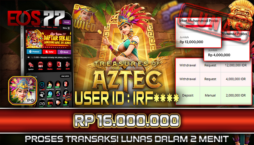 Selamat kami sampaikan kepada pemilik User ID: IRF**** yang berhasil meraih kemenangan besar melalui permainan Treasure of Aztec dengan total hadiah sebesar Rp 16.000.000. Setelah melakukan pengajuan withdraw, proses pencairan dana diproses dengan cepat dalam waktu sekitar 5–10 menit, dan pihak EOS77 langsung mengirimkan dana tersebut ke rekening yang terdaftar. Bukti transfer yang tersedia merupakan bukti resmi dan sah sesuai data transaksi dari bank tujuan.