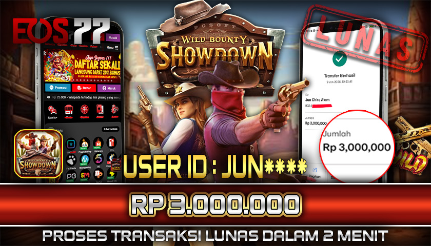 Selamat kami sampaikan kepada pemilik User ID: JUN**** yang berhasil meraih kemenangan besar melalui permainan Wild Bounty Showdown dengan total hadiah sebesar Rp 3.000.000. Setelah melakukan pengajuan withdraw, proses pencairan dana diproses dengan cepat dalam waktu sekitar 5–10 menit, dan pihak EOS77 langsung mengirimkan dana tersebut ke rekening yang terdaftar. Bukti transfer yang tersedia merupakan bukti resmi dan sah sesuai data transaksi dari bank tujuan.