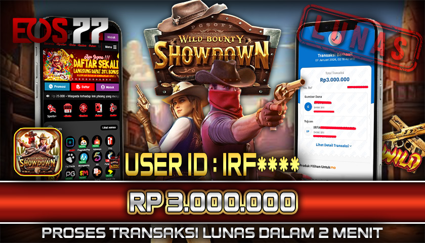 Selamat kami sampaikan kepada pemilik User ID: IRF**** yang berhasil meraih kemenangan besar melalui permainan Wild Bounty Showdown dengan total hadiah sebesar Rp 3.000.000. Setelah melakukan pengajuan withdraw, proses pencairan dana diproses dengan cepat dalam waktu sekitar 5–10 menit, dan pihak EOS77 langsung mengirimkan dana tersebut ke rekening yang terdaftar. Bukti transfer yang tersedia merupakan bukti resmi dan sah sesuai data transaksi dari bank tujuan.